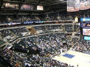Da ich die Halle Conseco Field House auch noch nicht kannte, fand ich die Idee dann irgendwann doch recht gut abends noch ein bisschen entspannt Sport zu schauen.