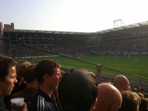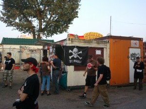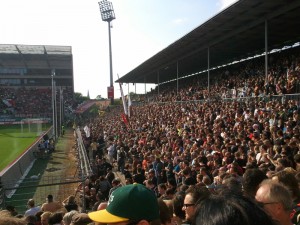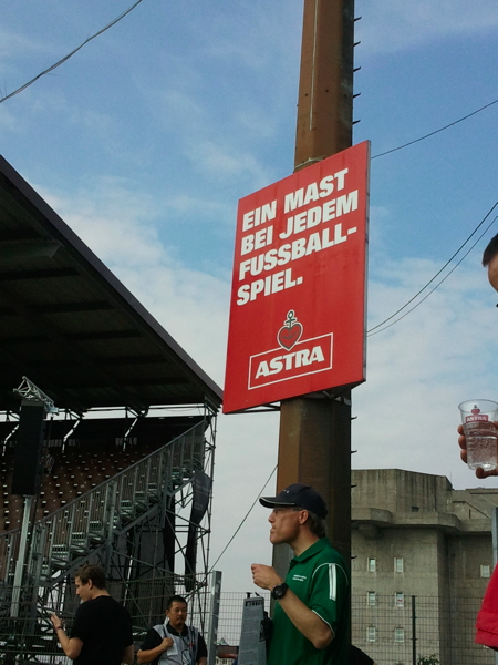 Sei es drum, es hat ja glücklicherweise an dem Tag nicht geregnet. Insgesamt kann man aber sagen, dass es rund ums Stadion in allen Aspekten viel entspannter und lässiger abläuft. Die Leute kommen wie früher erst kurz vorm Spiel aus der Kneipe zum Stadion, die ganzen Erstligafans sind zu großen Teilen wieder verschwunden und die Promotiontanten sind auch weniger geworden. – Ok, Pauli spielt jetzt qualitativ auch wieder Zweitligafussi, aber man kann da eben auch nicht alles haben. 😉